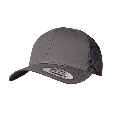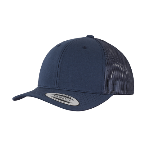 Flache Passform, leicht vorgebogener Schirm, Canvas-Front mit Mittelnaht verstärkt, Rückseite aus Netz, Snap-Verschluss